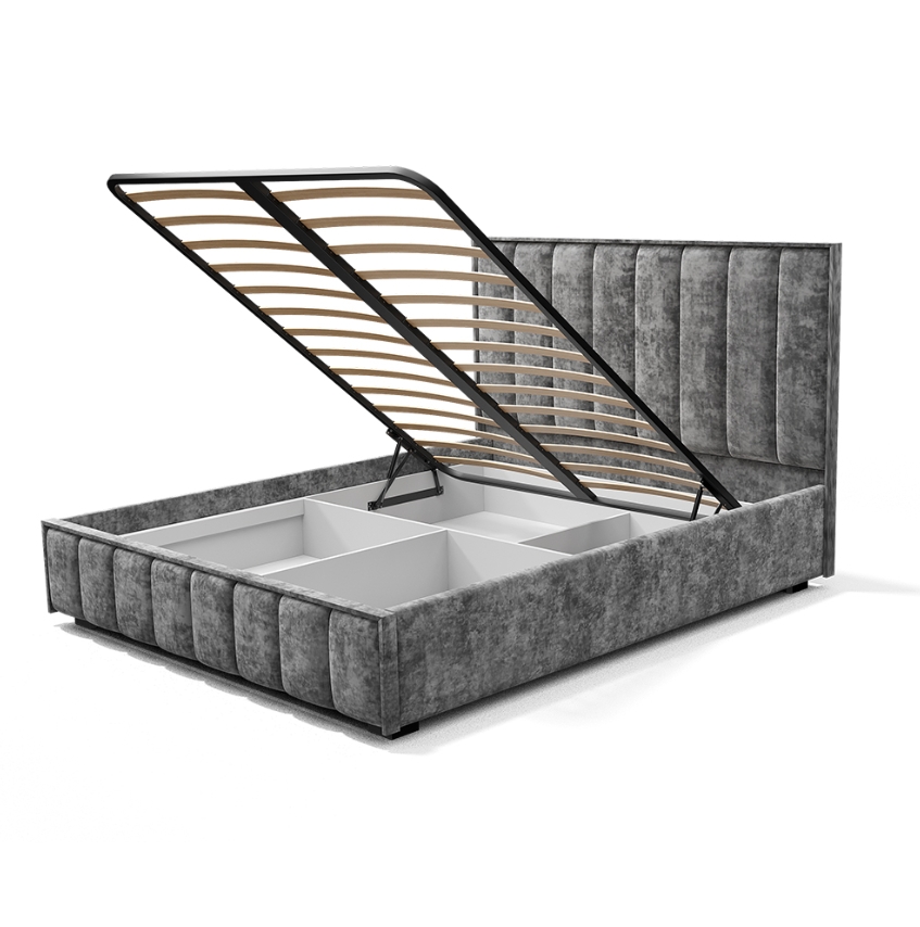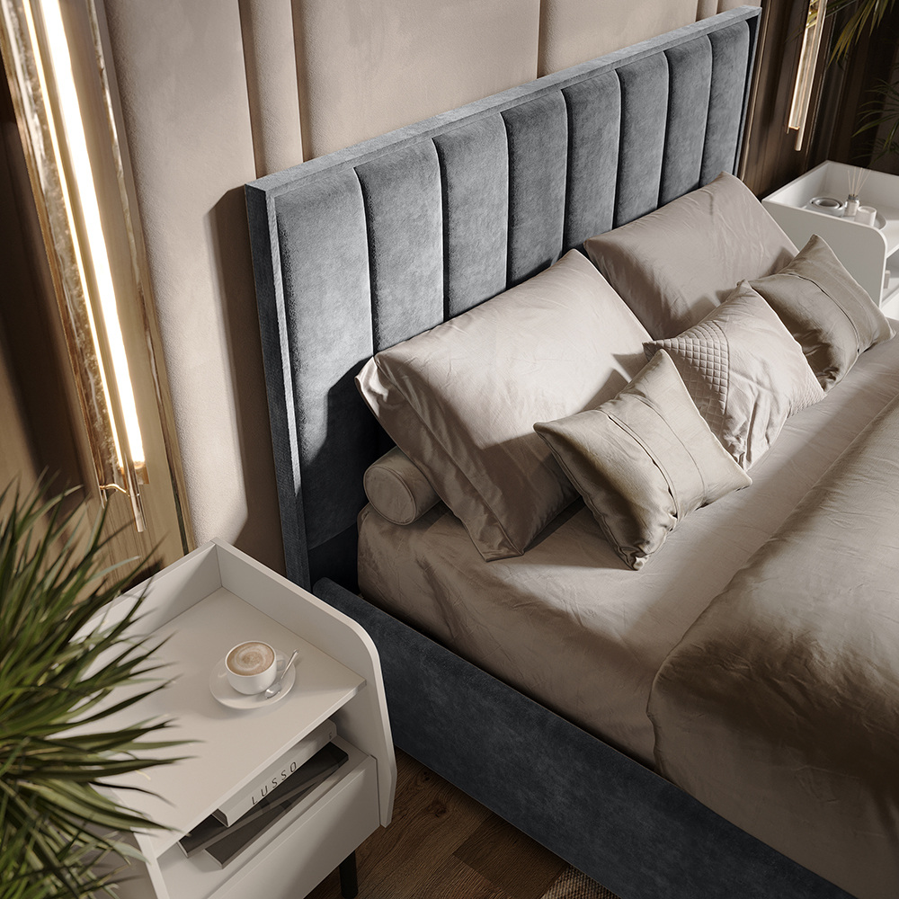 - мягкое изголовье имеет вертикальные стяжки, что придает модели элегантности.