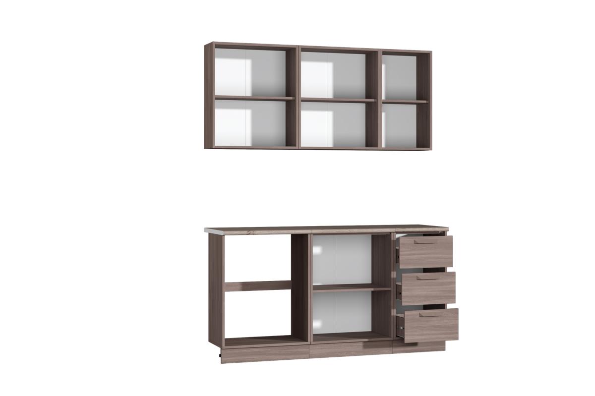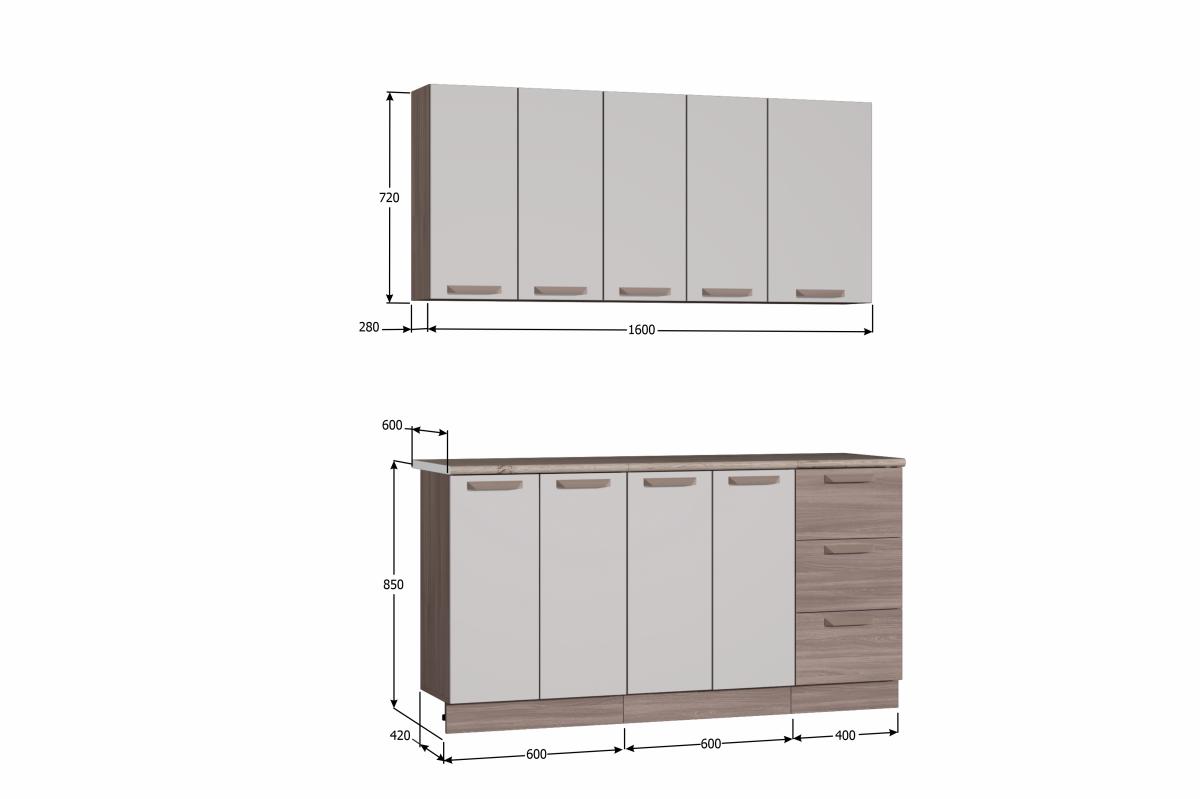 кухня укомплектована двумя столешницами по 600мм. и одной 400мм., толщиной 26 мм. цвета дуб кера;
