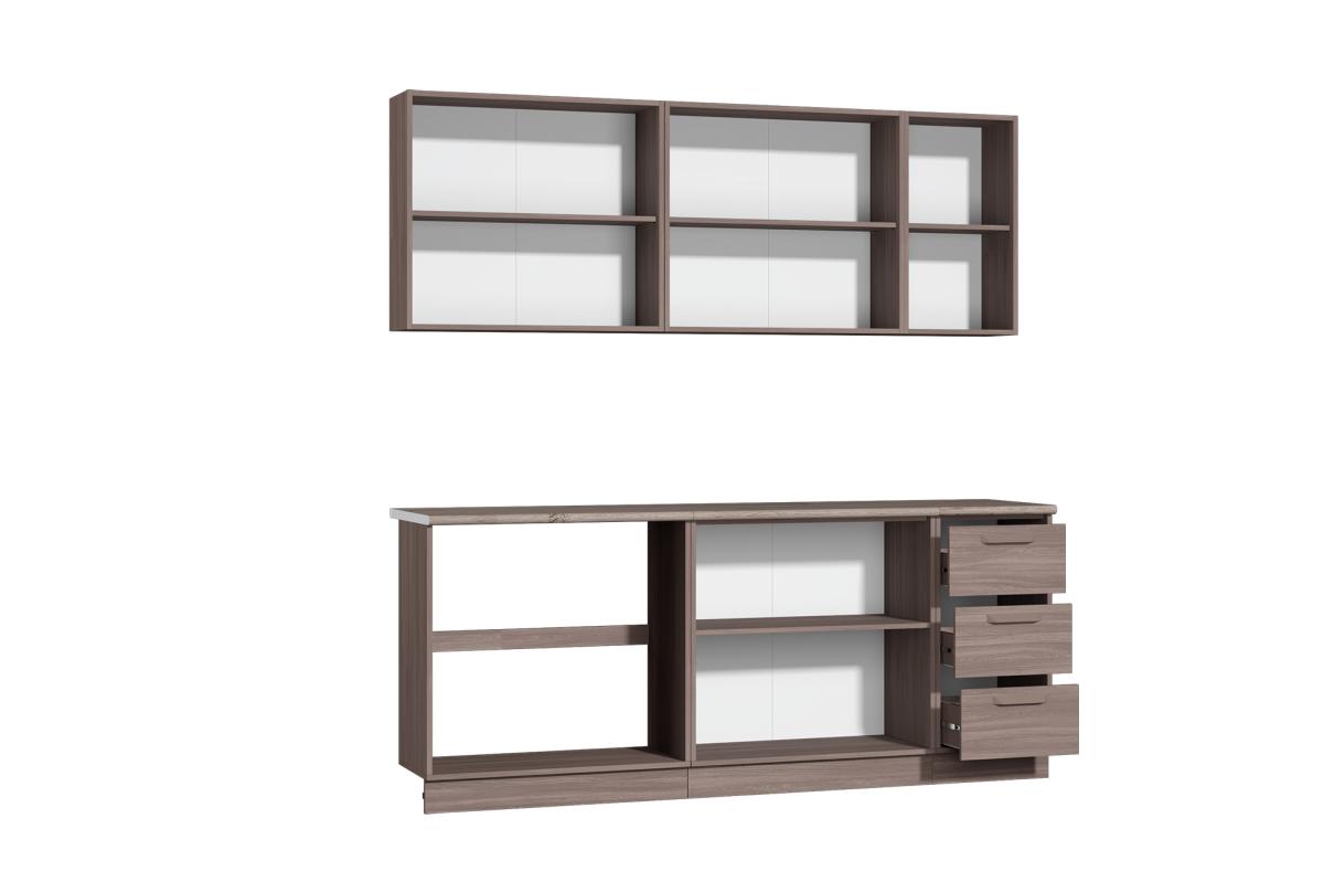 - ящики нижних шкафов снабжены шариковыми направляющими полного выдвижения 400 мм.;
