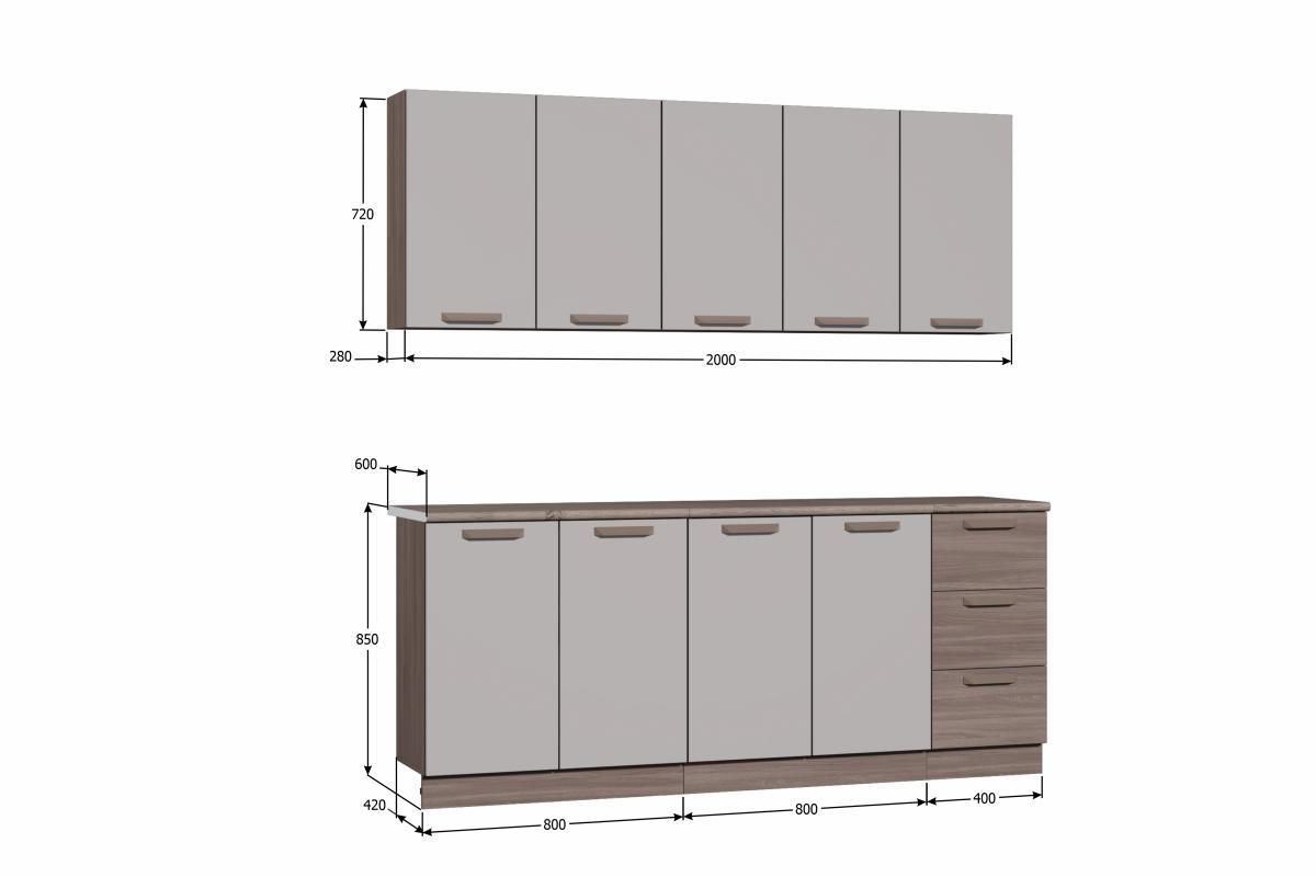 кухня укомплектована двумя столешницами по 800мм. и одной 400мм., толщиной 26 мм. цвета дуб кера;