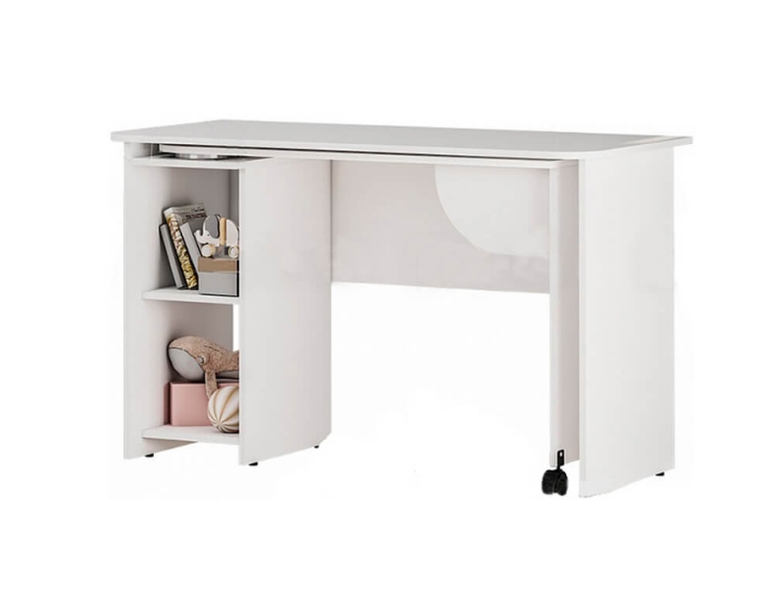 В двух открытых нишах можно хранить необходимые предметы или канцелярию. Белый цвет изделия позволит ему расположиться в любом интерьере.