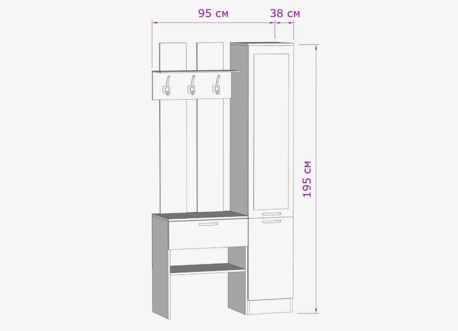 Ширина 95 см x Глубина 37,5 см x Высота 194,6 см