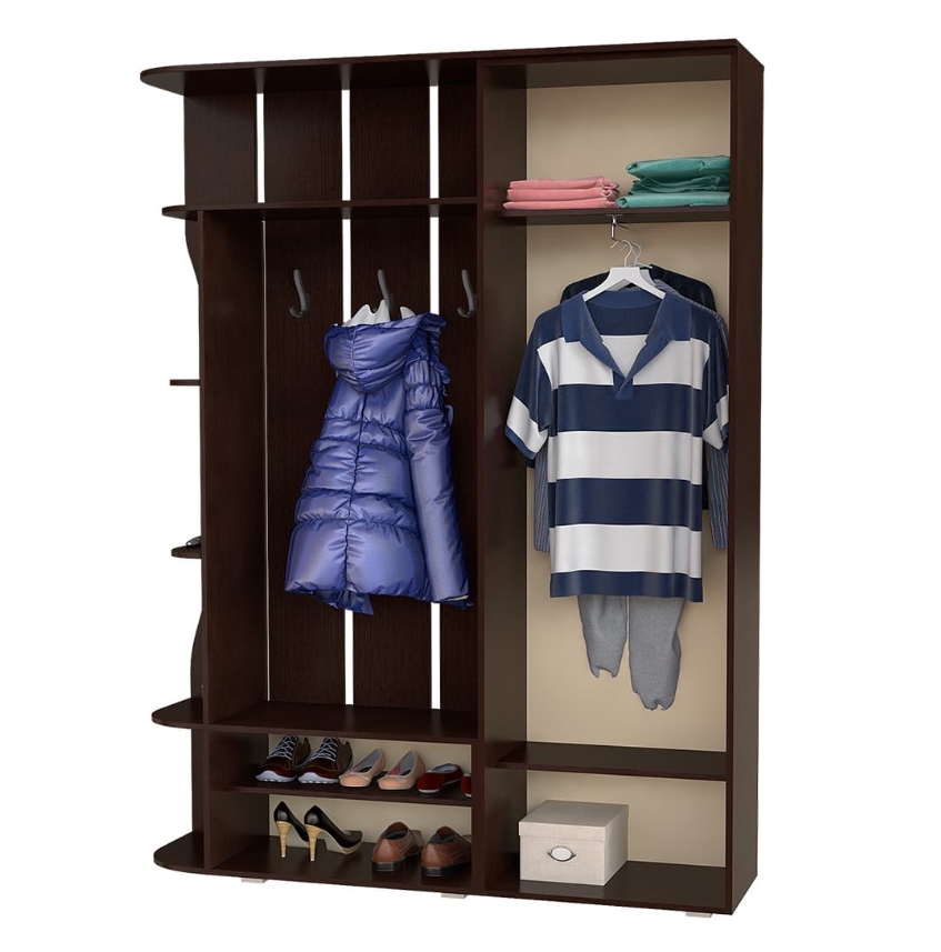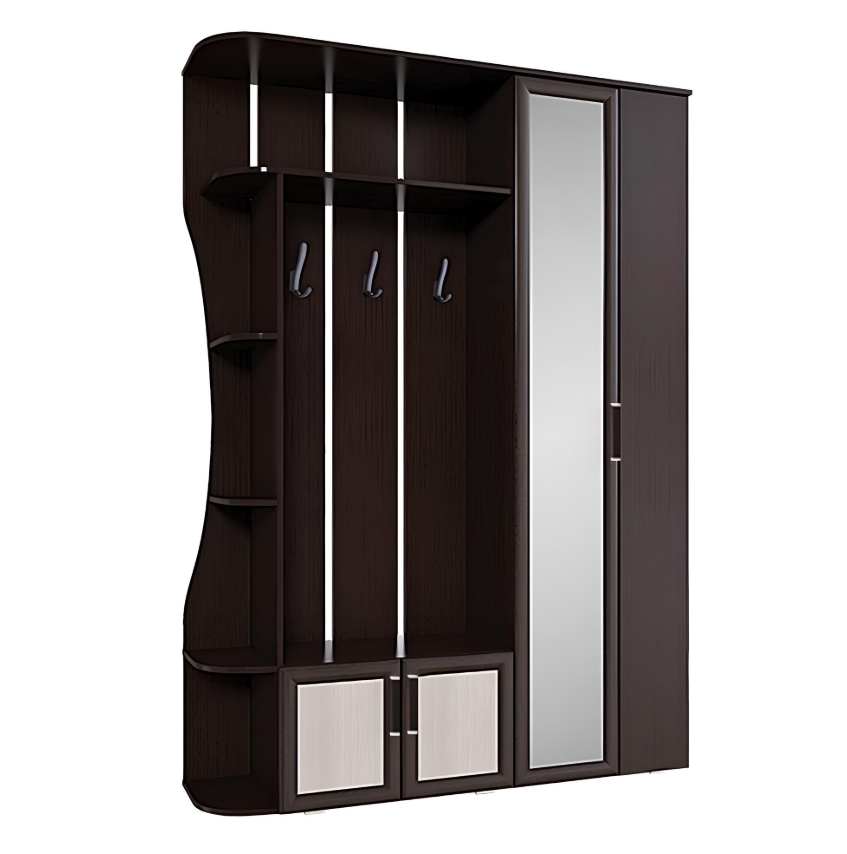Вместительная и лаконичная модель прихожей "Ксения-1" позволит разместить большое количество вещей. Модель состоит из распашного шкафа, открытой зоны с крючками для одежды и полками для аксессуаров, а также отделения для обуви. Одна из дверок является зеркальной, чтобы вы всегда могли оценить свой образ пред выходом.