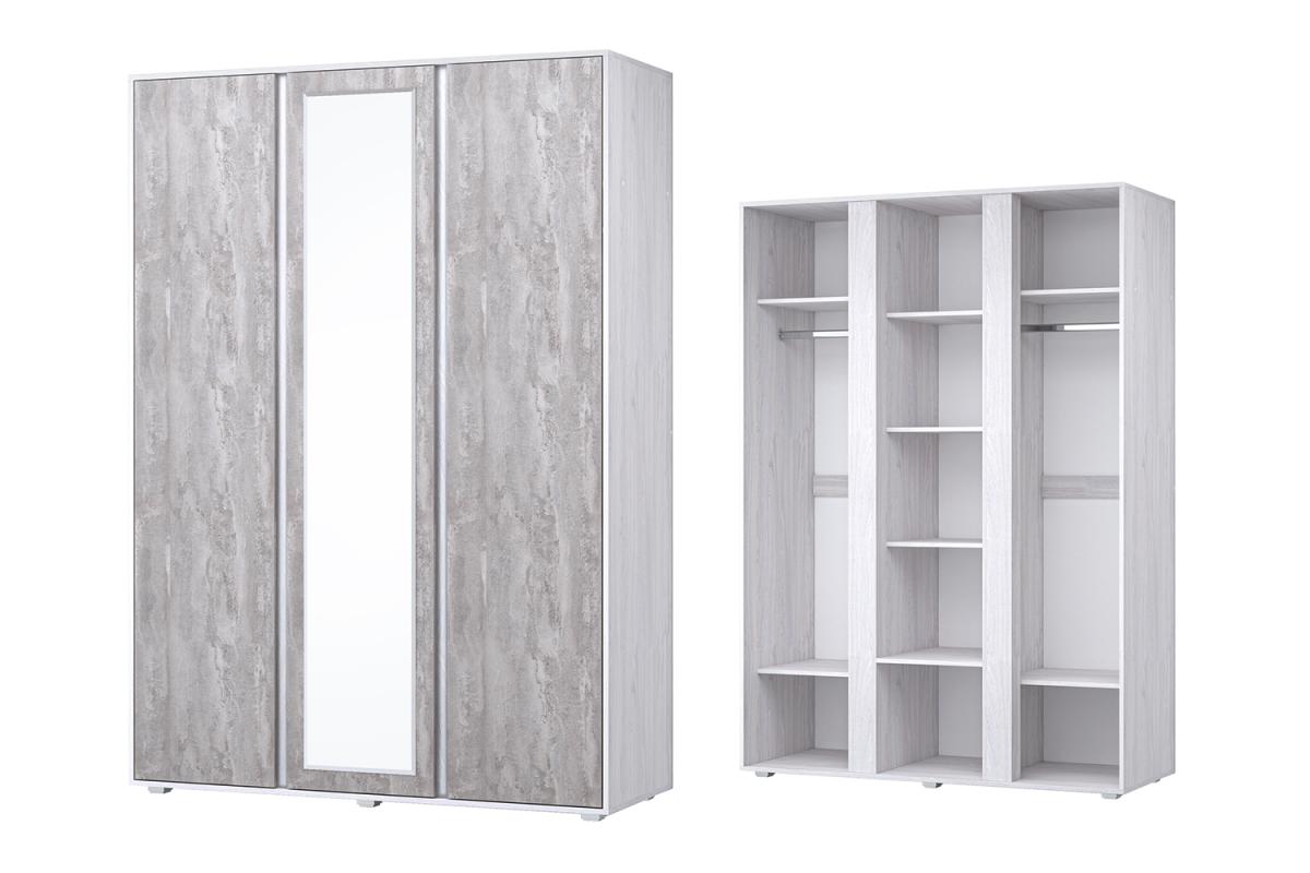 Спальня «Бетти» Цвет:Анкор светлый/бетонный камень Описание Как купить Шкаф 3-х створчатый Ширина 1500 Высота 2110 Глубина 555 Комод Ширина 960 Высота 832 Глубина 445 Кровать парящая Ширина 1664 Высота 900 Длина 2095 Тумба прикроватная Ширина 493 Высота 430 Глубина 365