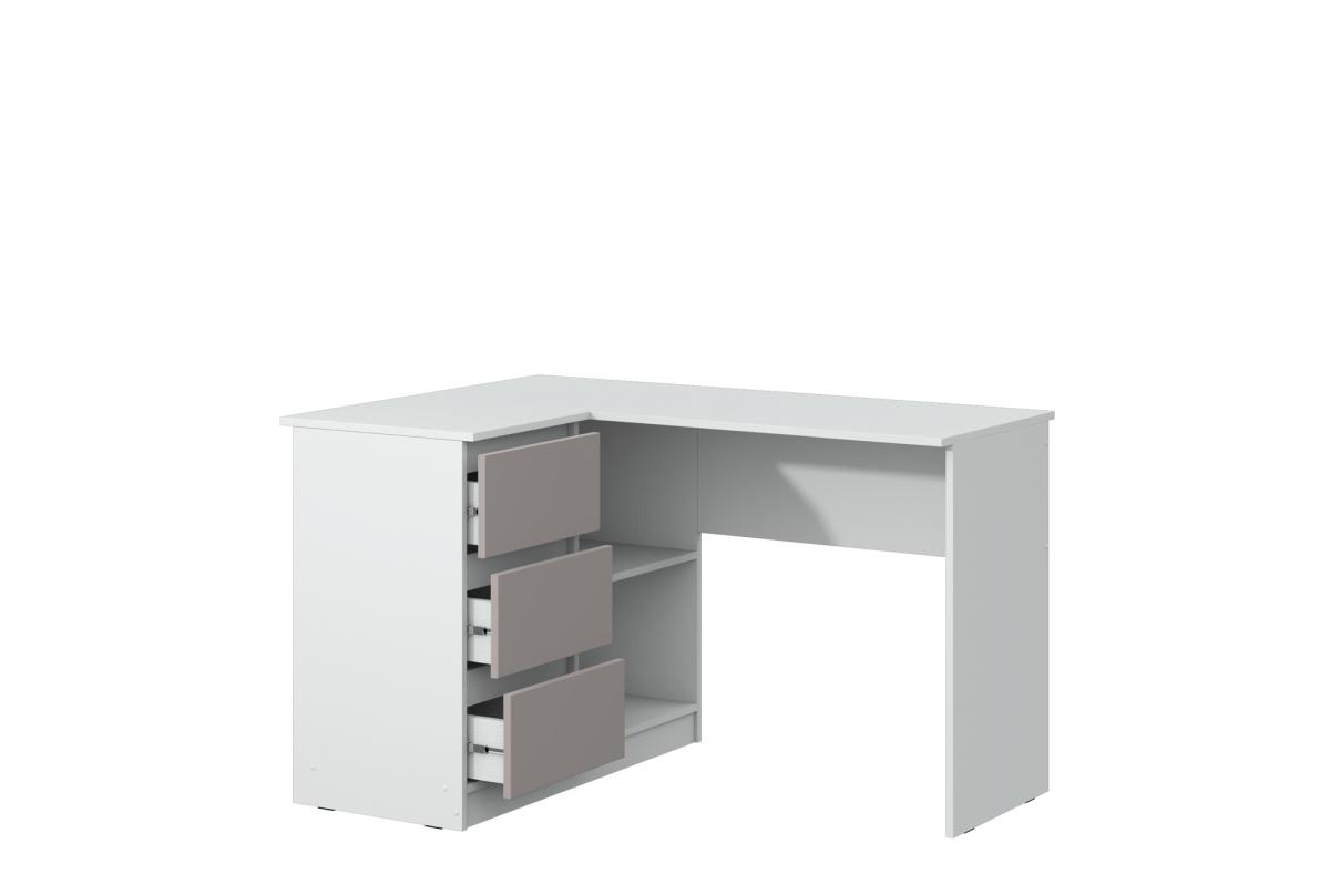 Удобный письменный стол с ящиками и открытой нишей, за которым будет комфортно учиться или работать за компьютером.