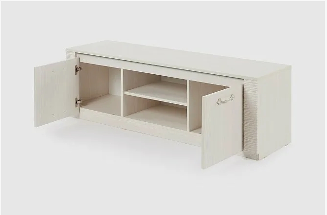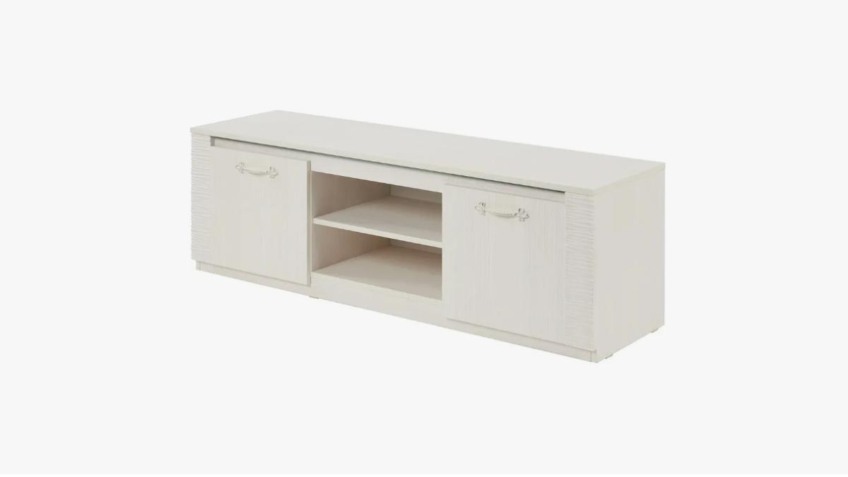 Тумба под ТВ «Элана» Ширина 1400 мм Глубина 410 мм Высота 470 мм Расцветка: Бодега белая Описание Как купить Тумба ТВ из модульной гостиной "Элана".